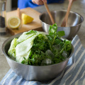 少人数の家庭でも、青菜を水に浸してパリッとさせる、サラダの材料をざっくり混ぜ合わせる、