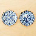 絵柄は吉祥文様で「間取芙蓉」と「牡丹唐草」。呉須で一枚一枚手描きしています。