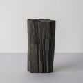 鉈や手斧の跡を残して削り出し、黒漆の塗り研ぎを重ねた一点物。 /掛け花入れ B