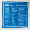洗濯表示の見方や洗い方をプリントしたバンダナ。