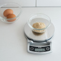 ステンレス製で清潔感のあるデジタル表示のはかり。