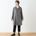 黒×白の細かな千鳥格子のウール地で仕立てた、シンプルなAラインのコート。