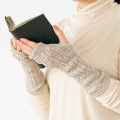 アームウォーマーは、ざっくりとしたケーブル編みのぬくもりある風合い。