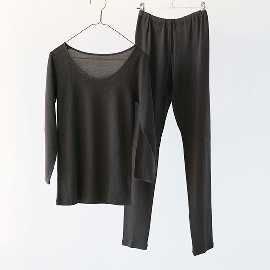 肌側はシルク、外側は極細ウールの二重構造のインナーです。