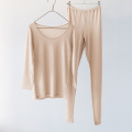 シルクとウールのインナーの8分袖とロングボトム(ベージュ)