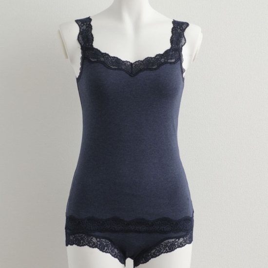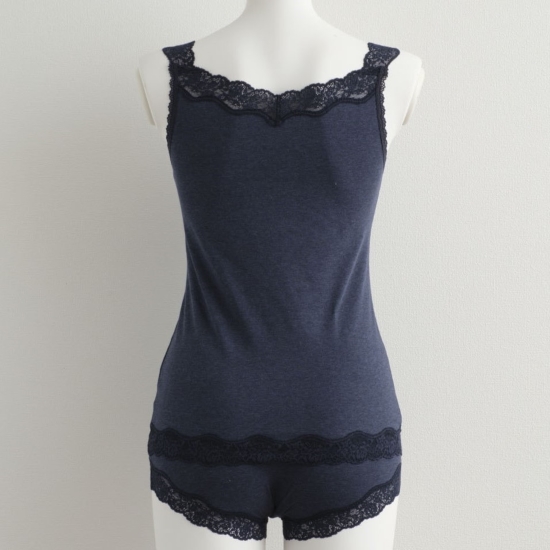 肩、胸まわり、裾にレースを贅沢にあしらった、優しい気持ちになれるキャミソール。