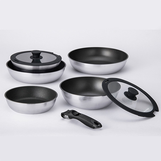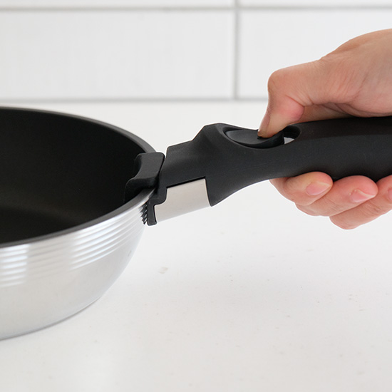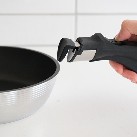 安定フィットにこだわって開発した、取っ手が着脱式のフライパン。