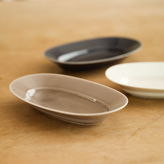 使い勝手のよい適度な深さが特長の、楕円の磁器プレートです。