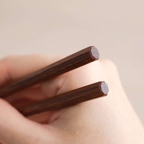 軽くて八角に面取りしているので指や手に優しく、先が細いから食べ物をつまみやすい。
