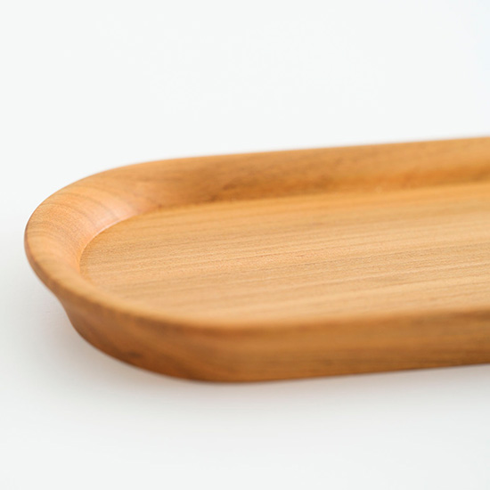 ユニークな細長型。コーヒータイムなどでカジュアルに使えるようにと作られたトレイです。