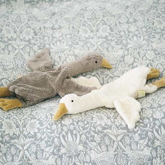 ドイツのゼンガー社がオーガニックコットンで手作りした、柔らかながちょうのぬいぐるみです。