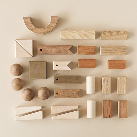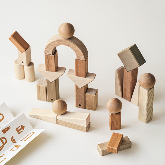 日本の豊かな木材の手触りや香りを体感できる積木のセット