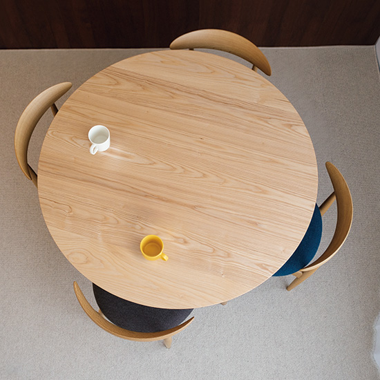 暮らしの風景が和らぐ、無垢材の丸テーブル